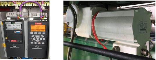 用兩臺Danfoss OGD電機替換原SSB Duradrive同步電機,用2臺FC302驅動器內置MCA114 Profibus-DP通訊卡驅動兩臺OGD電機,替換原系統的VLT5000變頻器。